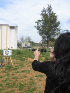 Zarabatana É uma arma artesanal, semelhante a um cano longo, feita de madeira ou plástico, com aproximadamente 2,5 m de comprimento, e um orifício onde se introduz uma pequena seta, de aproximadamente 15 cm . É uma arma muito utilizada pelos índios amazónicos para caçar animais e aves, por ser silenciosa e precisa. Por vezes esses índios utilizam veneno extraído de rãs, nas pontas das setas para uma melhor eficácia na caça. A nossa é de plástico e é utilizada nas corridas de aventura onde constitui uma das atracções das multi-actividades presentes, devido à fácil adaptação dos atiradores a este tipo de tiro. As setas são tipo agulhas, com um cabeçote de plástico. Tal como as duas modalidades de tiro anteriores, é possível praticar no nosso campo privado, onde o alvo para esta modalidade é dos mais pequenos que temos. Para quem quer começar a praticar pode contactar-nos para um contacto directo com a Zarabatana, ou então pesquisar mais informação na Internet através dos links abaixo sugeridos: http://www.arcobesta.com Loja online, excelente loja de artigos em Lisboa